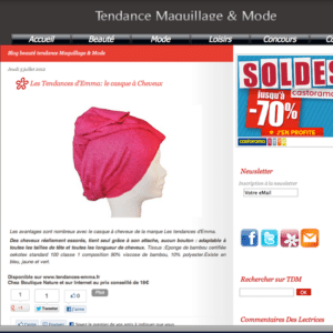 « Des cheveux réellement essorés, tient seul grâce à son attache, aucun bouton : adaptable à toutes les tailles de tête et toutes les longueur de cheveux. »