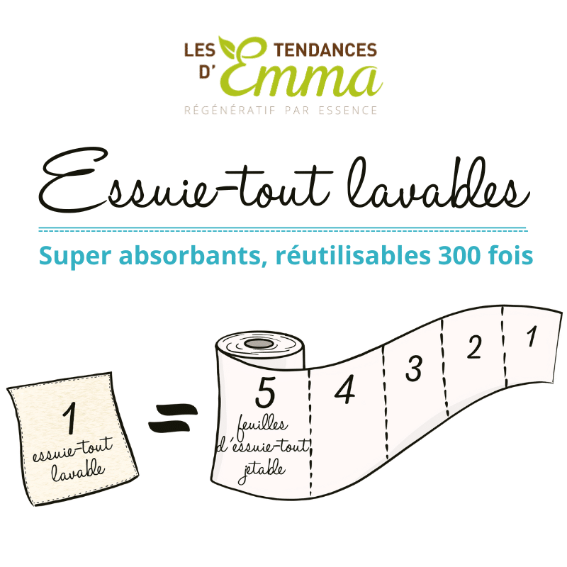 - 5 essuie-tout lavables, en coton bio ou bambou ultra-absorbant