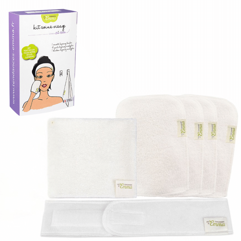 Eco-offreUn bandeau qui tient les cheveux, des gants qui démaquillent en douceur, une serviette qui toute douce qui préserve l’hydratation naturelle de votre peau : tout ce qu’il faut, rien de trop.