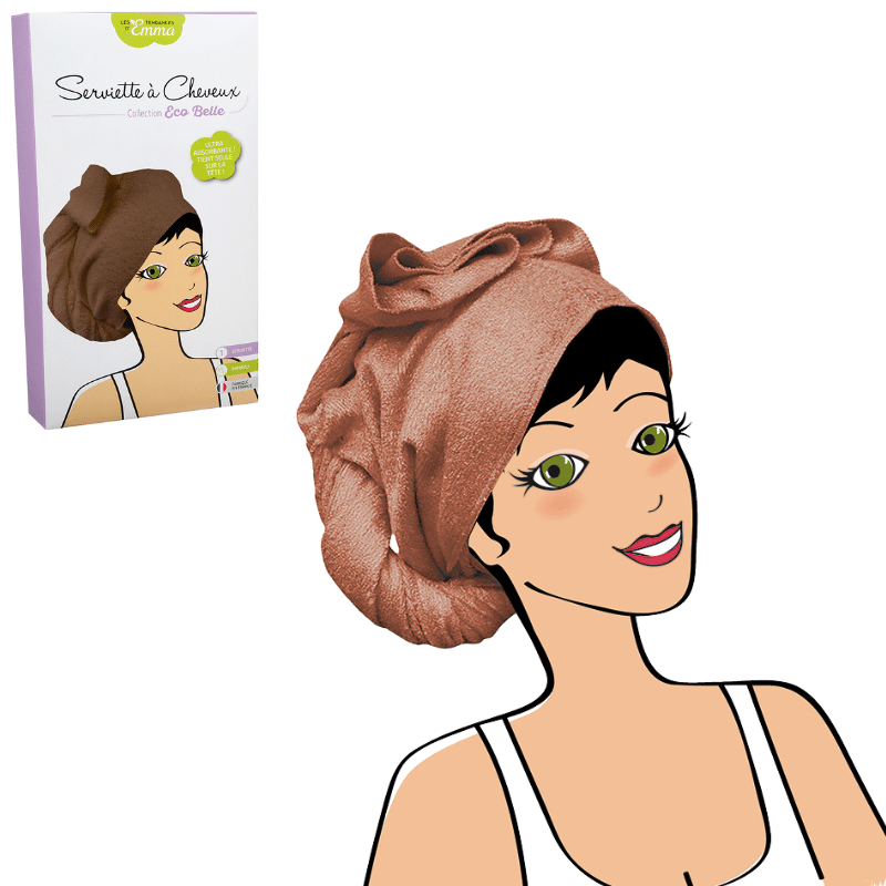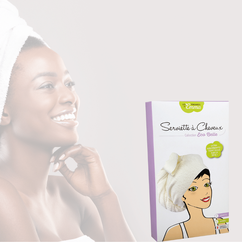 Eco-offreEnfin une serviette qui tient ses promesses ! Ultra absorbante et super efficace, cette serviette à cheveux tient seule sur la tête grâce à son attache maligne